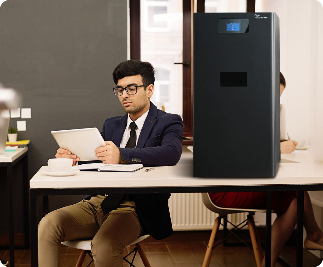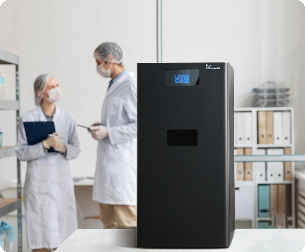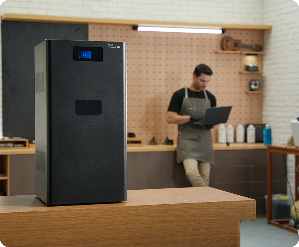 At just 40×42×82 cm, the K-100 fits comfortably on a desk or lab bench. No industrial facility required — perfect for makers, small businesses, and research labs.