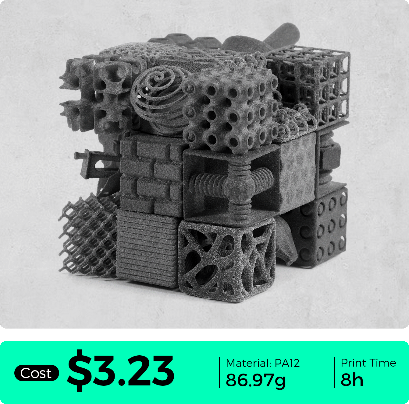 Create high-performance parts up to 120 × 120 × 130 mm for engineering-grade applications.