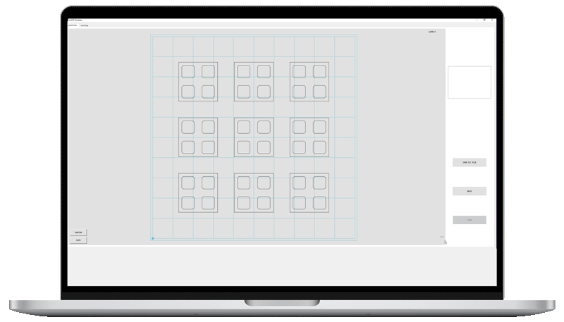 Import 3MF, STL, or OBJ files with ease. Orient models, estimate time and material, and optimize packing density to produce hundreds of end-use parts in a single run.